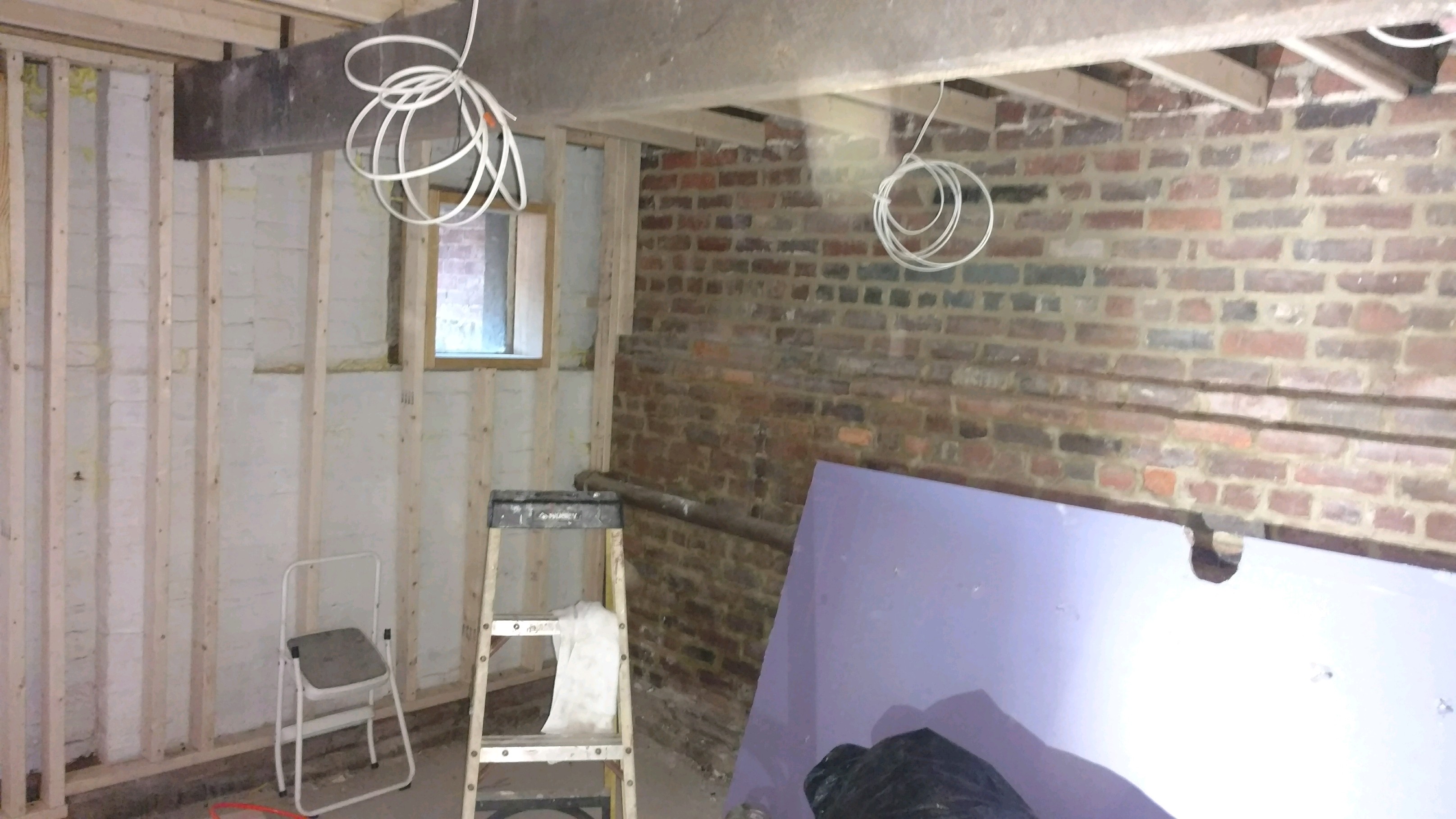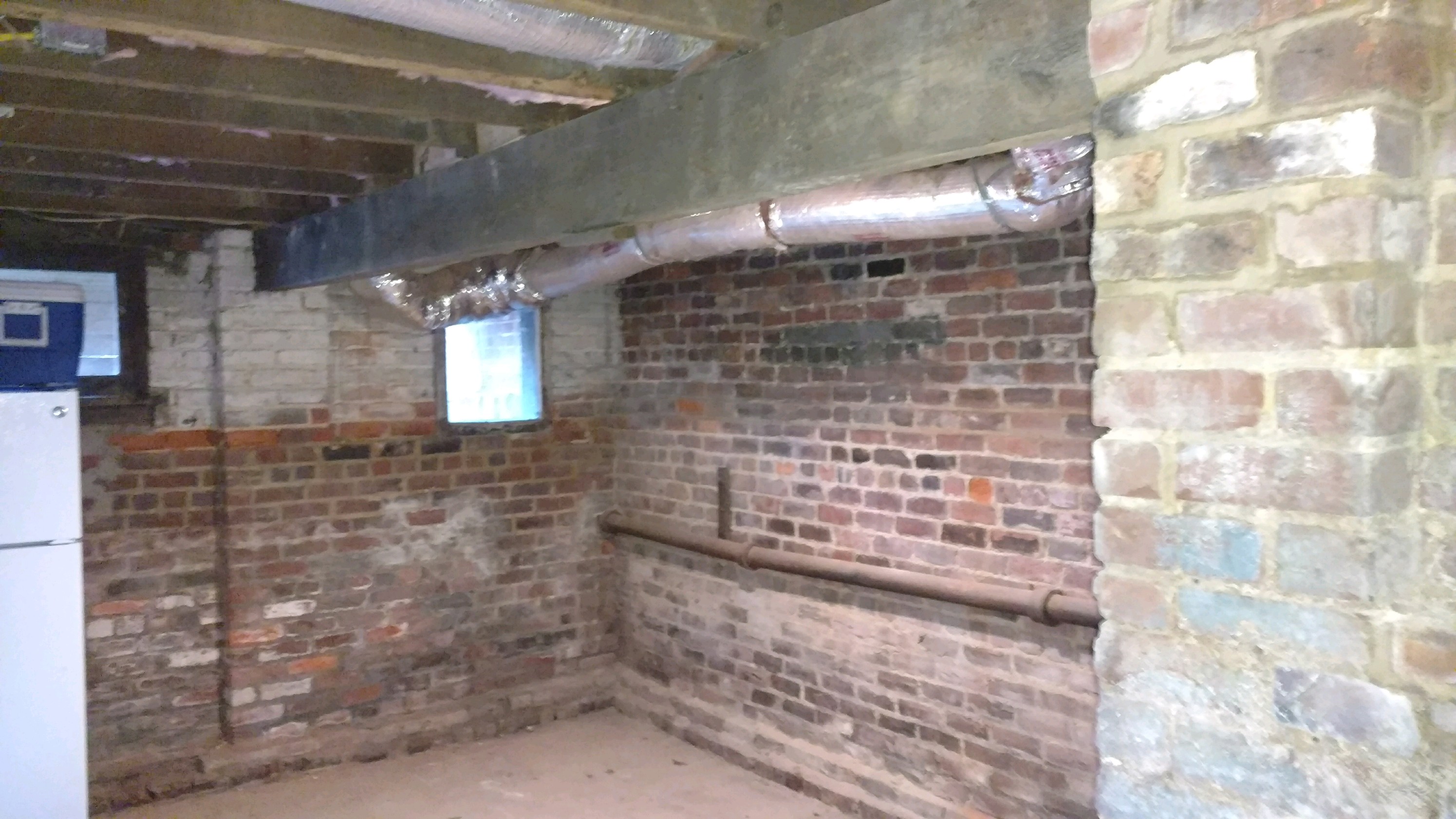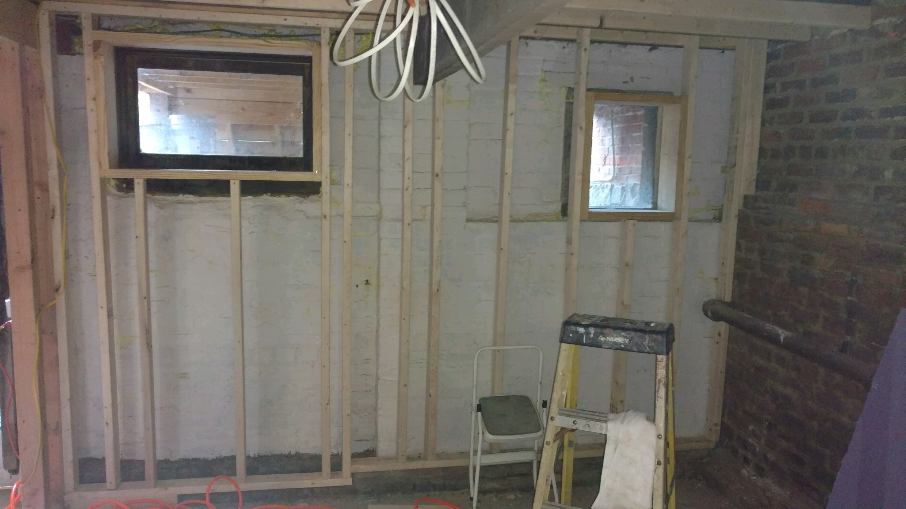 We treated this wall and added framing in preparation for adding insulation and finishing the wall.